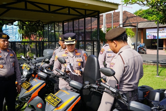 Dalam kegiatan tersebut, dilakukan pengecekan menyeluruh terhadap kendaraan dinas roda dua maupun roda empat yang digunakan oleh personel. Pemeriksaan meliputi kondisi fisik kendaraan, kelengkapan administrasi, serta kesiapan mesin guna memastikan seluruh kendaraan dalam kondisi prima dan siap digunakan untuk menunjang tugas di lapangan.