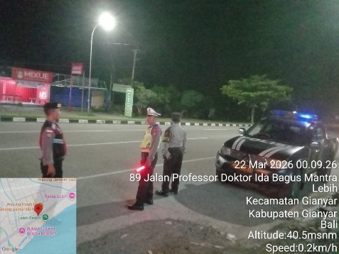 Patroli dimulai pukul 20.35 Wita hingga 02.00 Wita, dipimpin Pawas Ps. Kanit Lantas Polsek Gianyar, Iptu. I Ketut Gandra bersama piket fungsi dengan kekuatan personel sebanyak 4 orang, terdiri dari 1 personel KA SPK dan 3 personel Samapta. Kegiatan difokuskan pada titik – titik rawan serta jalur strategis yang kerap menjadi pusat aktivitas masyarakat.