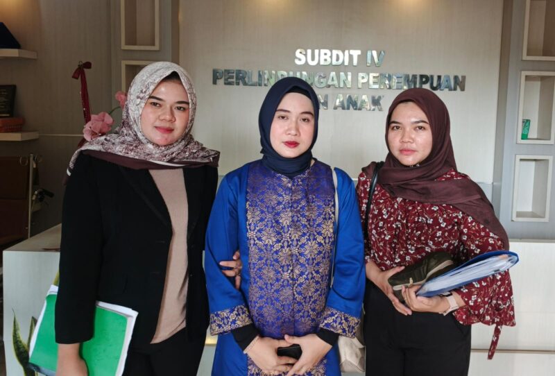 ‎Pelapor FN (29) hadir memenuhi panggilan penyidik didampingi penasihat hukumnya Dr Conie Pania Putri, Indah Permata Sari SH dan Tresya Meirinda Putri SH MH, Selasa (02/12/2025).