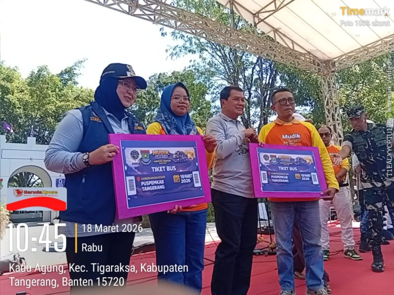 Garudaxpose.com | Tangerang – Pemerintah Daerah (Pemda) Kabupaten Tangerang menyelenggarakan mudik gratis ke lima wilayah, yaitu Sumatera, Jawa Barat, Jawa Tengah, Daerah Istimewa Yogyakarta, dan Jawa Timur. Sebanyak 2.800 jiwa akan berangkat menggunakan 56 bus dari titik nol kilometer, Kantor Pemerintah Kabupaten Tangerang.Rabu(18/03/2026)