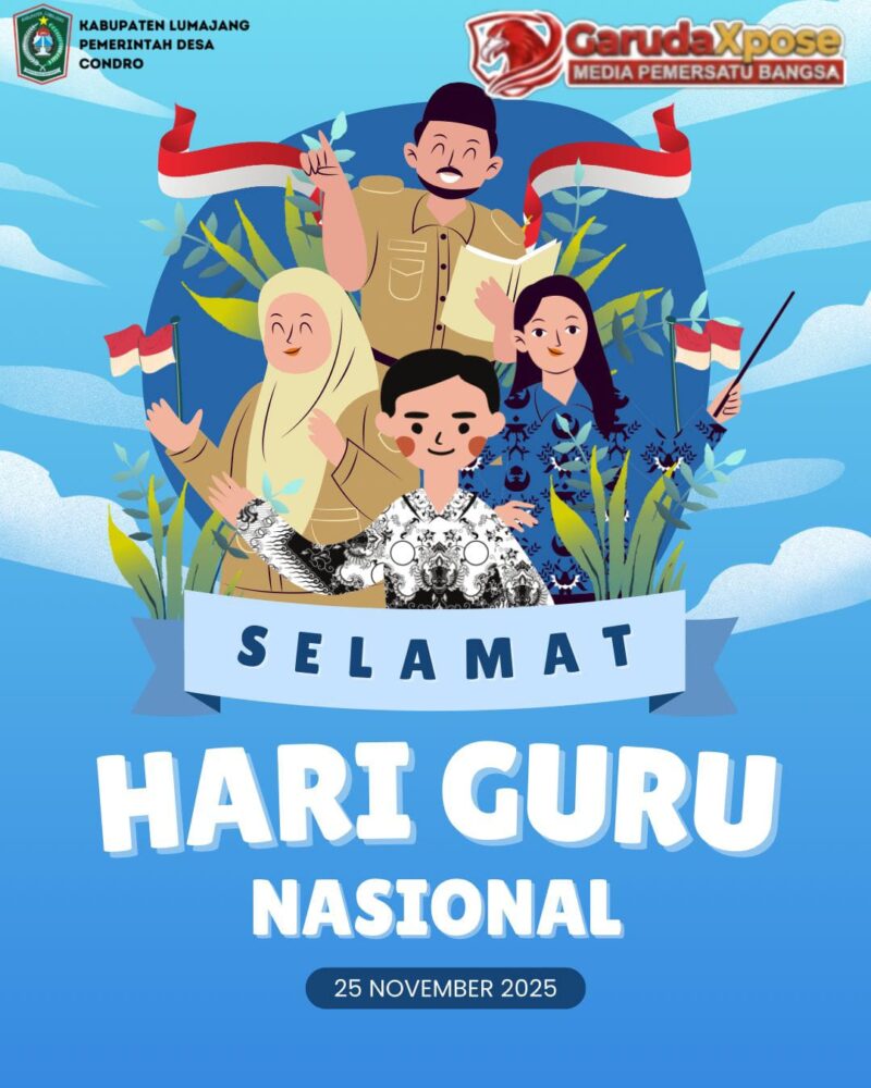 GarudaXpose I Lumajang — Pemerintah Desa Condro menyampaikan ucapan selamat memperingati Hari Guru Nasional kepada seluruh pendidik di Indonesia, khususnya para guru di wilayah Desa Condro, Kecamatan Pasirian, Kabupaten Lumajang, Jawa-Timur.