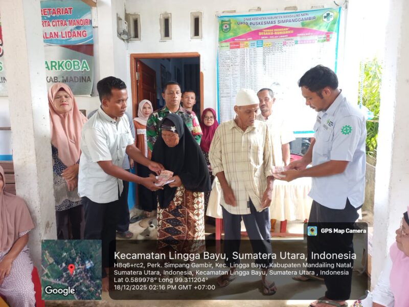GarudaXpose.com | Mandailing Natal — Pemerintah Desa (PemDes) Dalan Lidang, Kecamatan Lingga Bayu, Kabupaten Mandailing Natal, menyalurkan Bantuan Langsung Tunai (BLT) DD kepada 30 Kepala Keluarga (KK) untuk periode Juli hingga Desember 2025. Kegiatan penyaluran berlangsung di Kantor Kepala Desa Dalan Lidang, Kamis (18/12/2025).