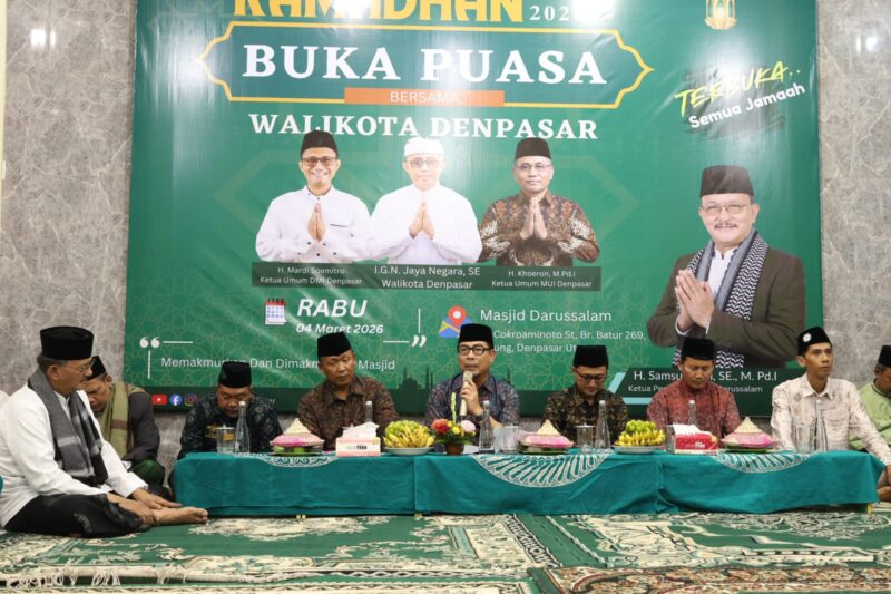 Garudaxpose.com l Denpasar-Bali – Wakil Walikota Denpasar, I Kadek Agus Arya Wibawa menghadiri Buka Puasa Bersama di Masjid Darussalam, Kelurahan Ubung, Rabu (4/3) petang. Kegiatan rutin saat bulan Ramadhan ini dilaksanakan untuk memperkuat silaturahmi, rasa toleransi serta menjaga kerukunan antar umat beragama dengan turut serta dalam tradisi dan kebudayaan berbagai agama yang ada di Kota Denpasar.