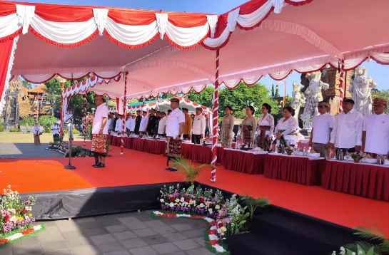 Garudaxpose.com | Bali – Upacara peringatan Hari Jadi ke-255 Kota Gianyar yang digelar pada Minggu 19 April 2026 di Lapangan Alun – Alun Gianyar berlangsung dengan khidmat dan lancar. Kegiatan yang mengusung tema Prasada Bhakti Ulangun ini dihadiri oleh unsur Forkopimda, pejabat daerah, tokoh masyarakat, hingga berbagai elemen masyarakat. Sejak awal kegiatan, personel Polsek Gianyar telah dikerahkan secara maksimal untuk memastikan seluruh rangkaian upacara berjalan aman dan tertib.