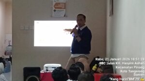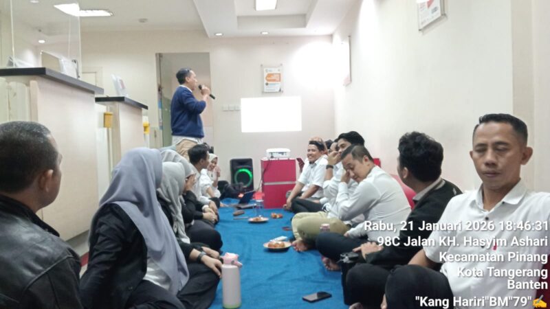 Garudaxpose.com | Kota Tangerang – PT Bank Pembangunan Daerah Banten (Perseroda) Tbk, Kantor Cabang Pembantu (KCP) Ciledug Kota Tangerang, menggelar meeting bersama seluruh karyawan staf teller, Puput Ajeng, Bibing Sugandi Supervisor Operasional, Sirbi Back Office (BO), Yolanda Yunita Customer Service (CS), Wicak, Dinda, dan Ahmad Syarifudin selaku tim Account Officer (AO). Acara ini dipimpin oleh Pimpinan Cabang (Pincab) Bank Banten (BB) KCP Ciledug, Dedi Suryadi, di ruang lantai satu pada Rabu malam, 21 Januari 2026.