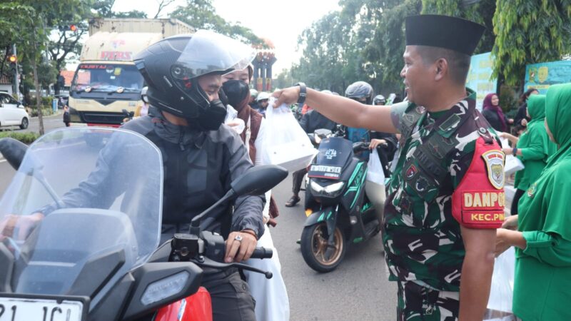Kegiatan tersebut dilaksanakan menjelang waktu berbuka puasa dengan melibatkan Babinsa Koramil dan anggota persit yang turun langsung ke lapangan untuk membagikan takjil kepada masyarakat.