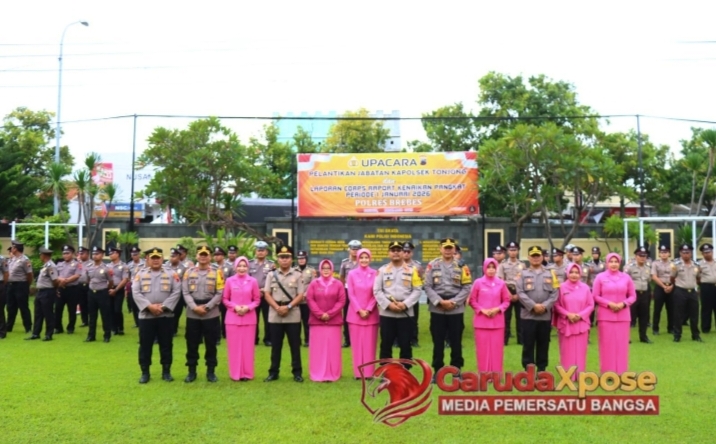 BREBES,GarudaXpose.com-Menjelang pergantian tahun 2025 menuju 2026, Kepolisian Resor (Polres) Brebes memperkuat struktur organisasi dan memberikan penghargaan kepada puluhan anggotanya. Bertempat di Lapangan Tri Brata Polres Brebes, Rabu (31/12/2025) pagi, dilaksanakan Upacara Pelantikan Jabatan Kapolsek Tonjong serta Laporan Corps Raport Kenaikan Pangkat Polri periode 1 Januari 2026.