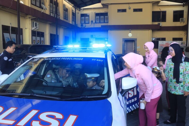 Selain mendapatkan materi ringan, anak-anak juga diajak berkeliling lingkungan Mapolres Probolinggo. Mereka berkesempatan melihat langsung kendaraan dinas serta berinteraksi dengan anggota kepolisian. Suasana hangat dan penuh keceriaan tampak mewarnai kegiatan tersebut.