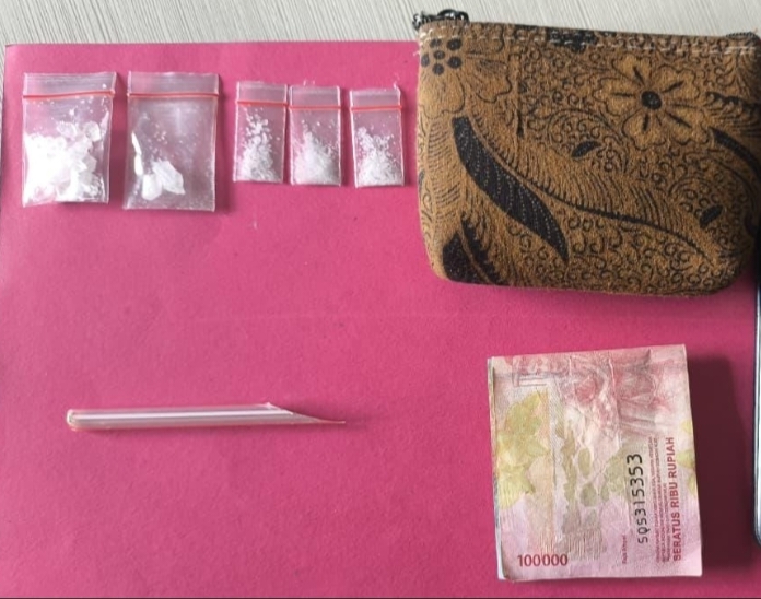 Pelaku berhasil diamankan dari dalam sebuah rumah. Dari penggeledahan yang dilakukan, ditemukan barang bukti berupa 5 plastik klip berisi narkotika jenis sabu dengan berat 2,52 gram, 1 buah pipet berbentuk skop, 1 dompet warna cokelat berisi beberapa klip kosong, serta uang tunai Rp150.000 yang diduga berkaitan dengan aktivitas peredaran narkoba.