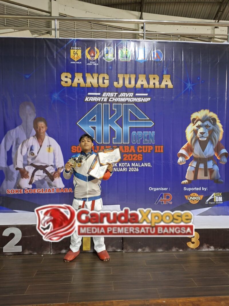 GarudaXpose.com I Lumajang – Prestasi membanggakan kembali ditorehkan oleh anggota Polres Lumajang. Bripda Yoga Ananda Aditya Wahyu berhasil meraih Juara 1 Kumite Beregu TNI–Polri Putra dan Juara 2 Kumite Perorangan kelas 75 Kg TNI–Polri dalam ajang East Karate Championship AKF Open Soejagat BAP Cup 3 Tahun 2026.