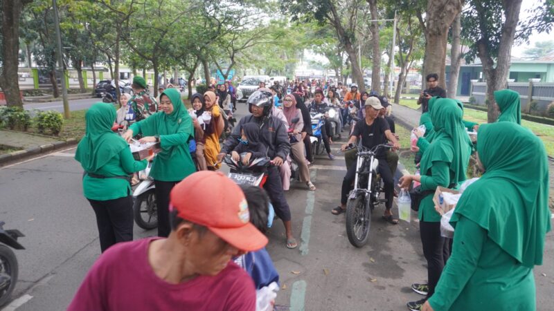 Aksi itu berlangsung menjelang waktu berbuka puasa. Puluhan anggota TNI dan Persit berdiri di tepi jalan, menyapa pengendara motor hingga sopir angkutan umum yang melintas.