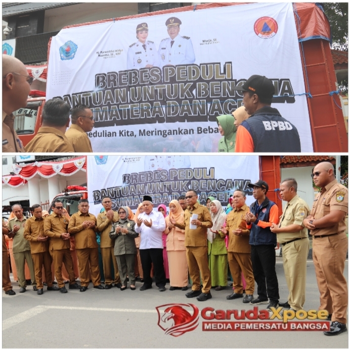 BREBES.GarudaXpose.com-Sekretaris Daerah Brebes, Dr. Tahroni,M.Pd, melepas tiga mobil bantuan yang mengangkut bantuan kemanusiaan untuk korban bencana di Sumatra dan Aceh di Halaman Pendopo Brebes, Senin (8/12/2025). Bantuan ini dikirimkan atas perintah Bupati Brebes Paramitha Widya Kusuma.