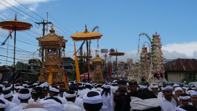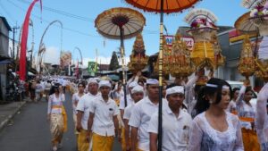 “Sarana pendukung lainnya seperti dekorasi direkonstruksi dari visual – visual masa lalu. Sementara itu, persembahan berupa pala bungkah – pala gantung juga dibentuk secara tematik, yakni mewujudkan figur Dewa Wisnu dan Dewi Sri serta Garuda Wisnu Kencana. Figur ini adalah perwujudan dari bakti masyarakat subak dan pasihan kepada Ida Bhatari Sakti Batur atas limpahan anugerah tiada putus melalui aliran air dan kemakmuran tanah,” katanya.