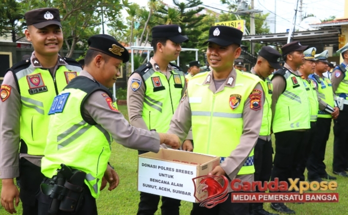 Menutup rangkaian kegiatan apel, seluruh personel Polres Brebes secara spontan berpartisipasi dalam kegiatan kemanusiaan melalui Donasi personel Polres Brebes Peduli Bencana.