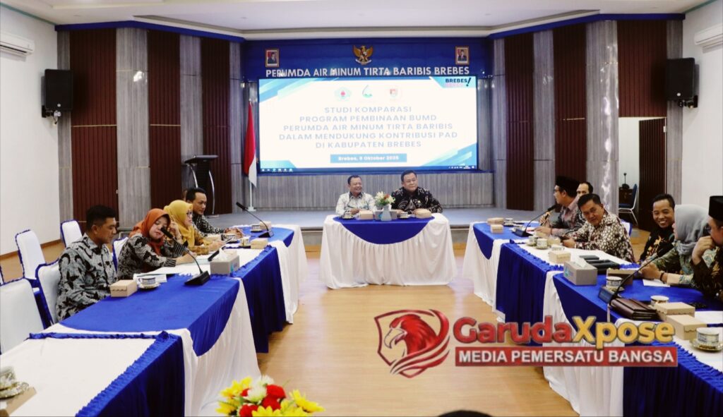 BREBES. GARUDAXPOSE. COM -Pemerintah Kabupaten Brebes menerima kunjungan studi komparasi dari Komisi B DPRD Kabupaten Cilacap pada Kamis, 9 Oktober 2025. Kunjungan ini bertujuan untuk mempelajari pengelolaan Badan Usaha Milik Daerah (BUMD) yang sukses di Brebes, khususnya Perumda Air Minum Tirta Baribis, dalam meningkatkan Pendapatan Asli Daerah (PAD).