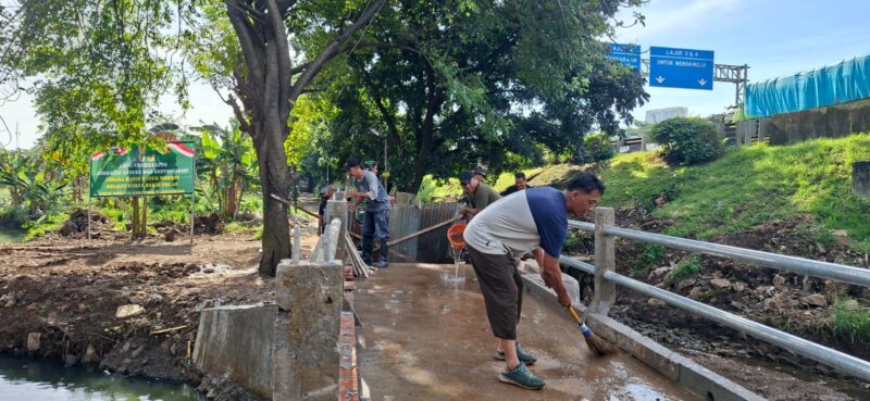 Garudaxpose.com, Tangerang – Personel Koramil 01/Tgr, Kodim 0506/Tgr bersama masyarakat terus mempercepat pembangunan Jembatan Garuda beton yang melintasi Gorong – gorong. Pembuatan jembatan dilakukan di Kelurahan Panunggangan Utara, Kecanatan Pinang Kota Tangerang, Jum’at (10/04/2026).