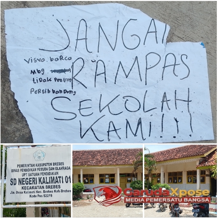 BREBES,GarudaXpose.com-Para siswa dan wali murid SDN Kalimati 1 Desa Kalimati, Kecamatan Brebes, Kabuaten Brebes menggelar aksi demo menolak rencana alih fungsi sekolah menjadi dapur MBG. Mereka minta, rencana tersebut dibatalkan.