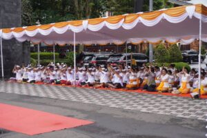 “Puncaknya, pada hari Kamis, 19 Maret 2026, kita semua akan melaksanakan Catur Brata Panyepian yaitu Amati Geni Amati Karya, Amati Lelungan, dan Amati Lelanguan sebagai upaya pengendalian diri total selama dua puluh empat jam,” imbuhnya.