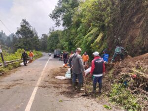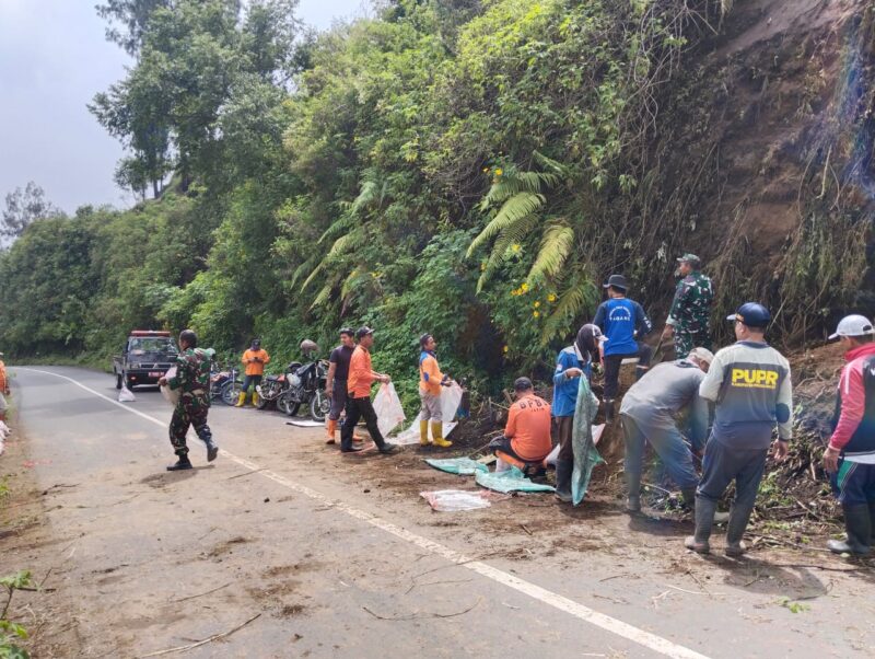 ” Untuk pembersihan material longsor kami TNI anggota Koramil Sukapura, Tagana kecamatan Sukapura, BPBD kabupaten Probolinggo, PUPR kabupaten Probolinggo turun langsung dengan kerja bakti melakukan pembersihan material longsor yang menutup separuh badan jalan,” ucap Sertu Nurhasan.