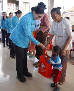 Selain itu, diberikan pula paket susu SGM Explor 150 gram (@2 kotak) kepada 10 balita dan paket susu SGM Bunda 150 gram (@2 kotak) kepada 10 ibu hamil. Bantuan lainnya berupa paket multivitamin untuk balita dan dewasa, 50 pak telur (@40 butir), 1.000 bibit cabai, 25 bibit jambu kristal, 25 bibit nangka, serta buku resep kuliner olahan kue dan pangan lokal dalam rangka kegiatan aksi sosial tahun 2026.