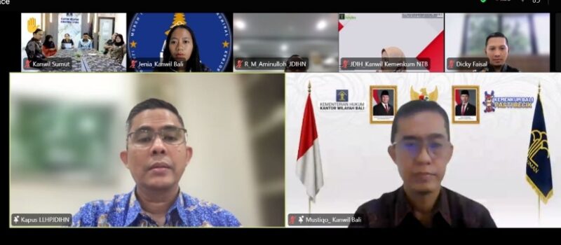 Kegiatan yang diinisiasi Pusat Layanan Literasi Hukum dan Pembinaan JDIHN (Pusat JDIHN) ini dihadiri pengelola JDIH dari seluruh kantor wilayah. Dari Kanwil Kemenkum Bali, hadir secara daring Kepala Divisi Peraturan Perundang – Undangan dan Pembinaan Hukum, Mustiqo Vitra Ardhiansyah didampingi Kepala Bagian Tata Usaha dan Umum, I Nengah Sukadana, Penyuluh Hukum Ahli Madya, Ida Ayu Putu Herawati, serta Tim JDIH Kanwil Kemenkum Bali.