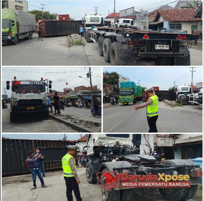 Truk Kontainer Terguling di Pantura Brebes, Kemacetan Parah!