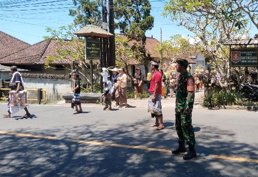 Upacara adat yang berlangsung di Setra Desa Adat Samplangan berjalan dengan khidmat, aman, dan lancar berkat sinergi antara Babinsa, Pecalang dan masyarakat setempat.